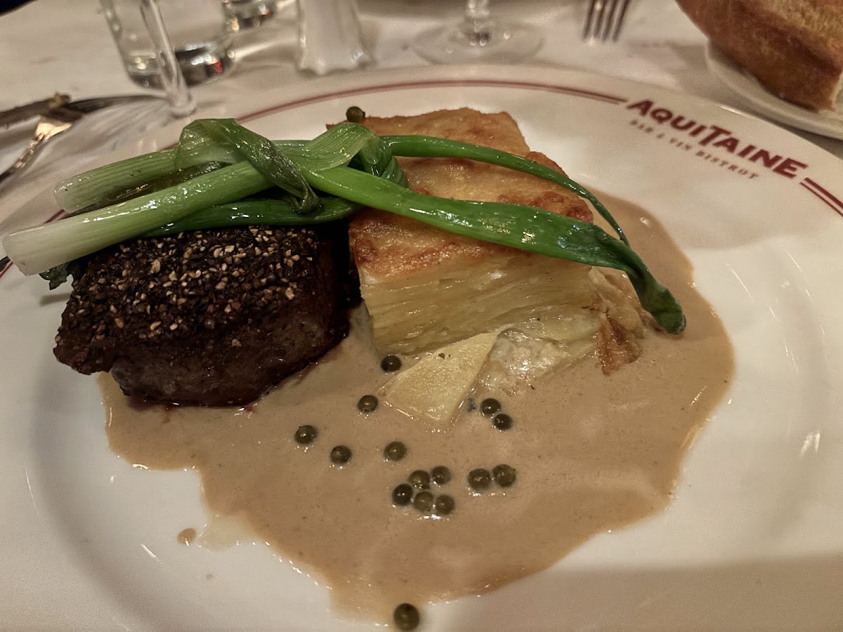 Beyond the food, Aquitaine shines with its curated wine list. With options that span regions in France, Italy, and beyond, the restaurant has a wine for every palate. The staff is knowledgeable and always happy to recommend the perfect pairing for your meal. Whether you’re in the mood for a rich Bordeaux or a crisp Sauvignon Blanc, their selection is diverse and well-suited to complement their menu.